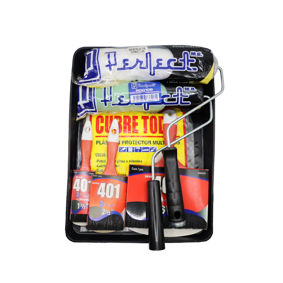 Dale a tus proyectos de pintura la calidad y detalle que merecen con el Kit «Perfect» Multiuso. Diseñado para brindar versatilidad y resultados profesionales, este kit incluye herramientas seleccionadas para cubrir grandes superficies y llegar a los detalles más precisos, todo con la máxima comodidad.